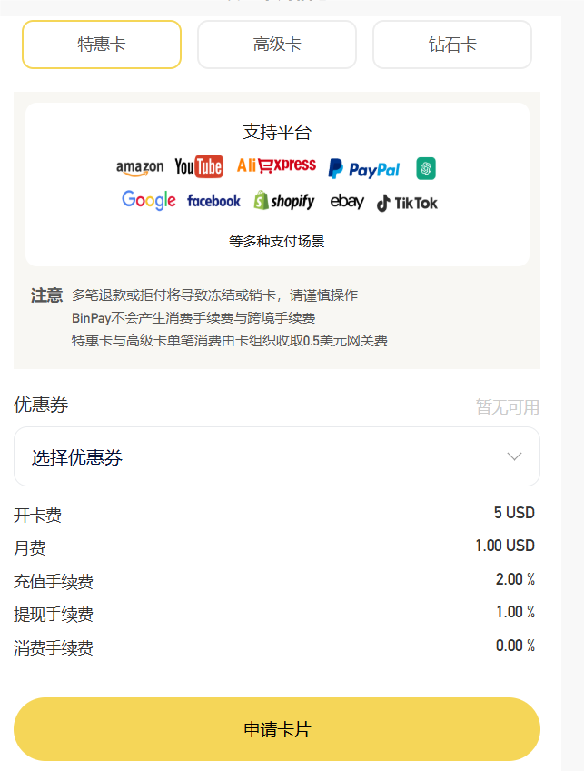 给大家分享一个虚拟卡渠道,加个便宜,手续费低,支持usdt/usdc的多链充值