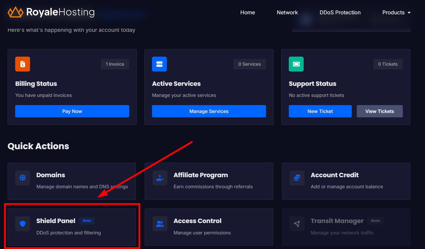 打开 https://royalehosting.net/dashboard/account